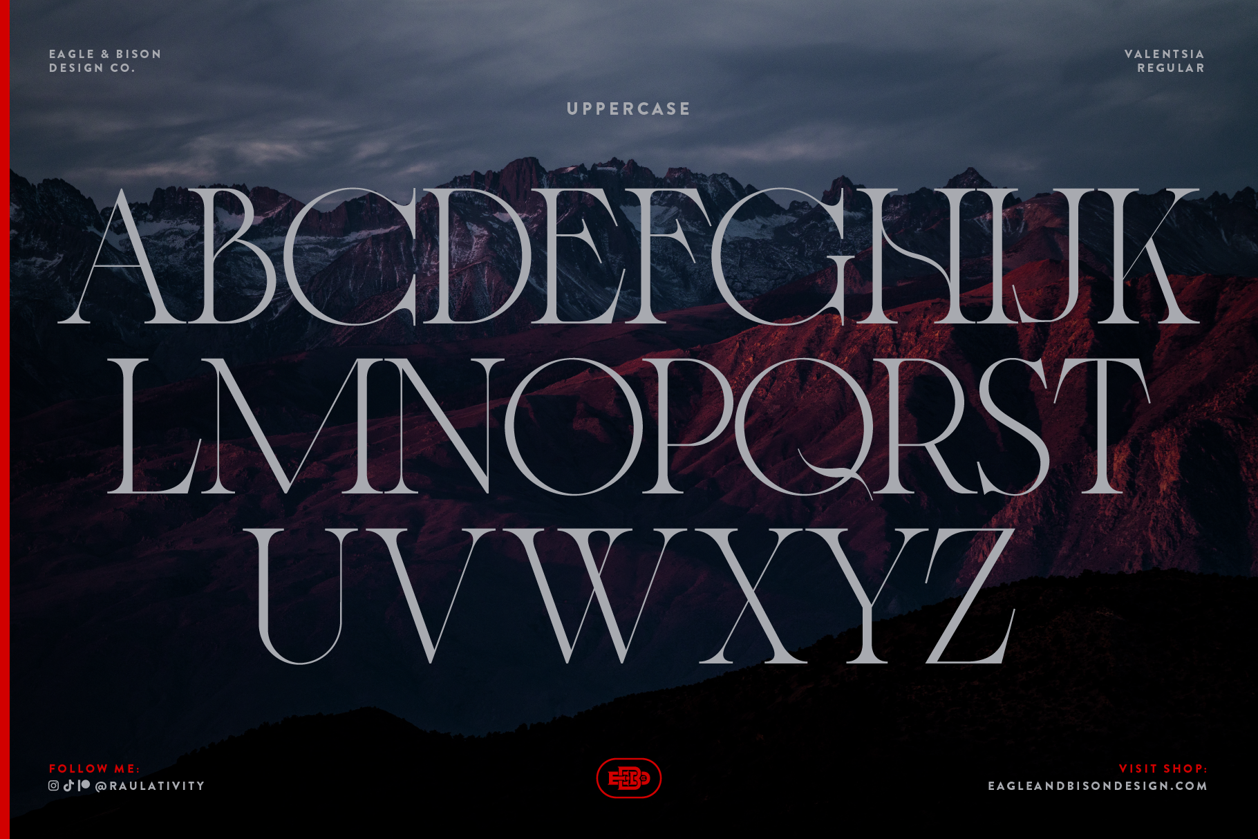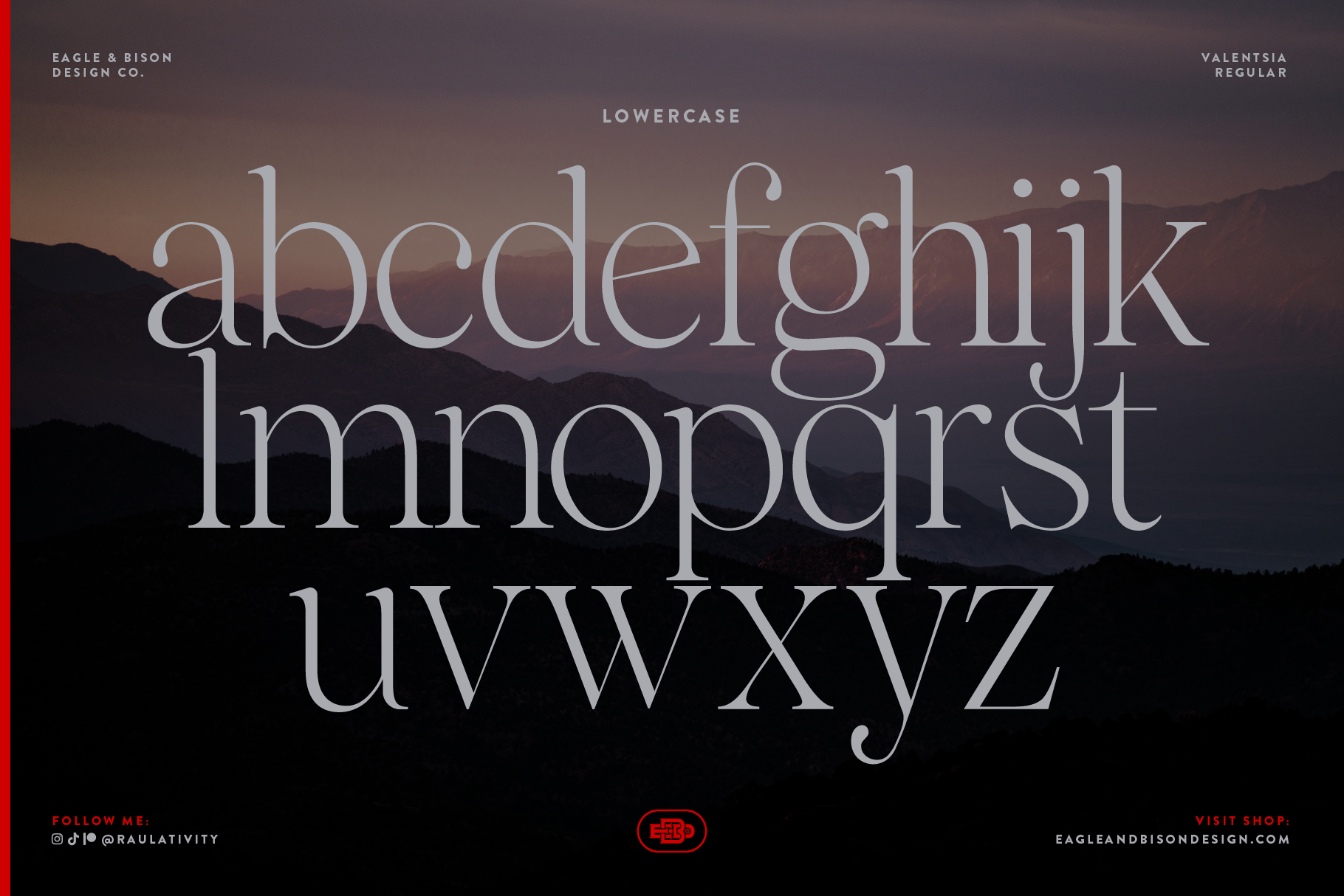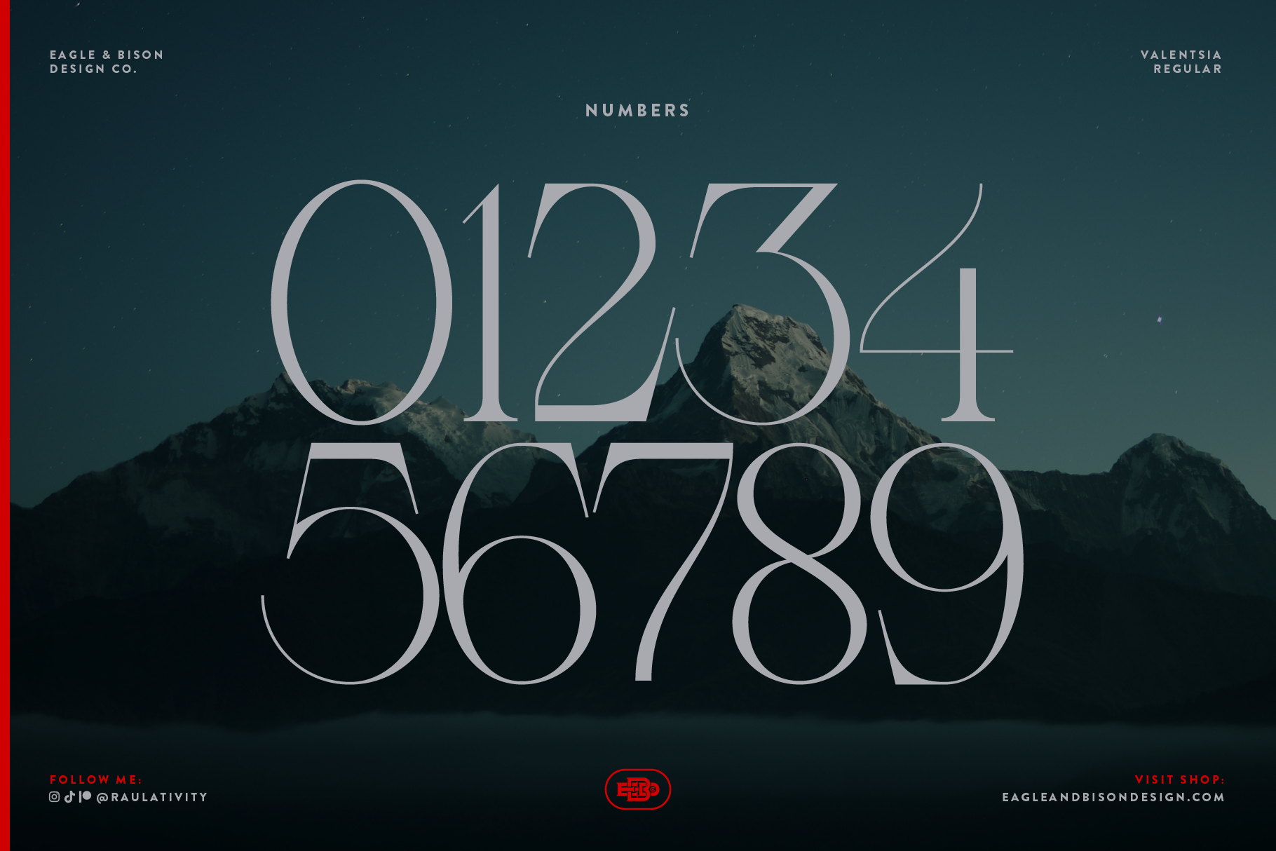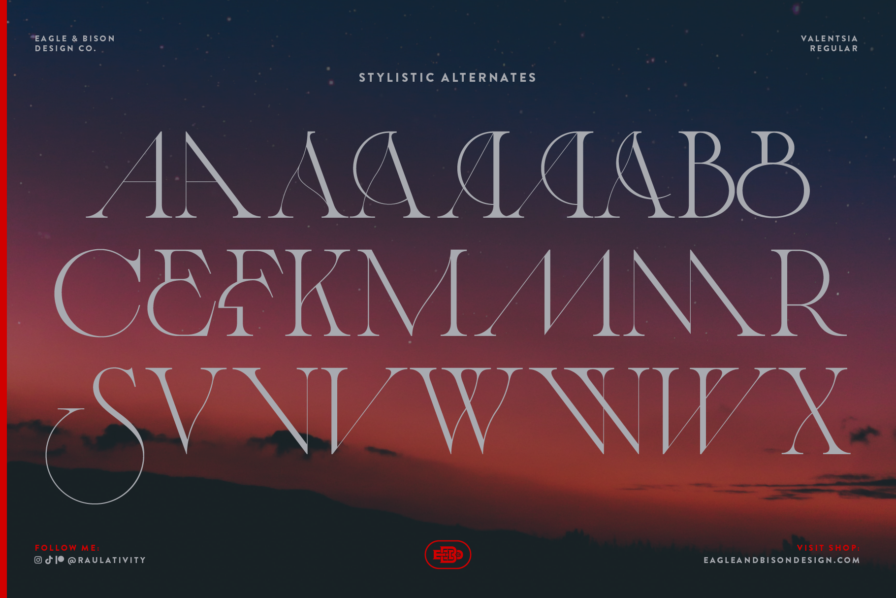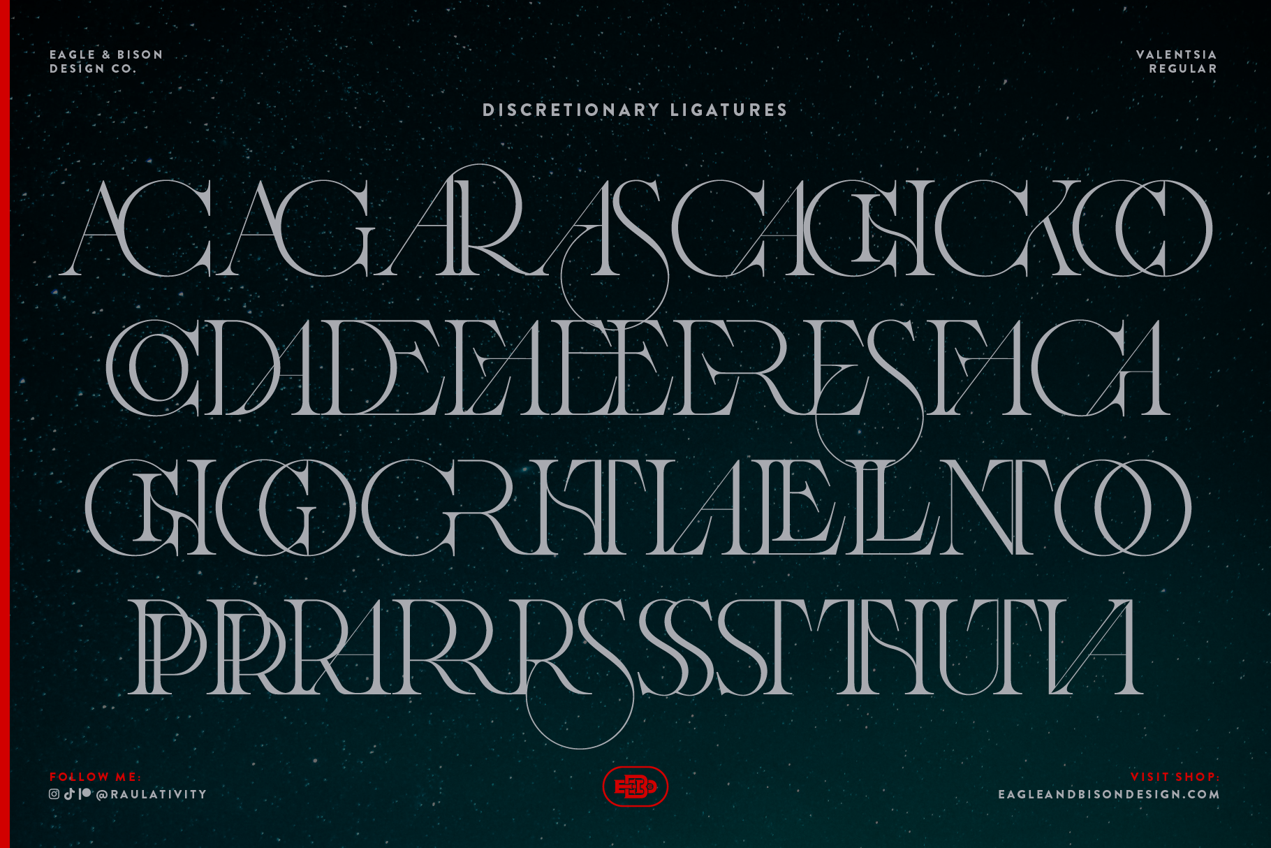 Valentsia now includes 516 glyphs, featuring uppercase and newly added lowercase letters, numerals, punctuation, 26 alternate characters, 36 discretionary ligatures, and a range of special characters. This version also adds extended Latin support for over 87 languages.